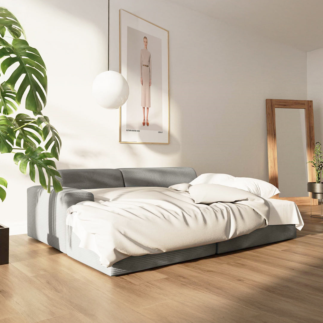 Sofa Villet z kolekcji Rodier Timeless posiada możliwość przekształcenia w wygodne łóżko dla dwóch osób, co stanowi jej istotną zaletę. Proces przekształcania jest prosty i wymaga zaledwie kilku prostych kroków. Dodatkowo, pufa sofy posiada pojemnik na pościel, co zwiększa jej funkcjonalność. Elegancki design i neutralna kolorystyka sofy Villet nie tylko z łatwością wpasowują się w każdy wystrój wnętrza, ale także czynią ją wyrafinowanym, funkcjonalnym i praktycznym meblem do każdego salonu.